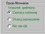 Skasuj zaznaczenie | Zaznacz rozmowę | Dla wszystkich rozmów nie spełniających warunków zaznaczenie zostanie ustawione. Jeśli istniały poprzednio zaznaczone rozmowy które spełniają warunki, to zaznaczenie zostanie skasowane. |